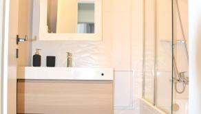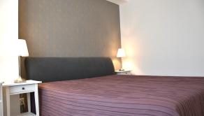 Dispozičné riešenie: vstupná predsieň, samostatná toaleta, spálňa so šatníkom, loggia otočená do vnútrobloku, obývačka spojená s jedálňou a kuchyňou, samostatná spálňa, kúpeľňa s vaňou.