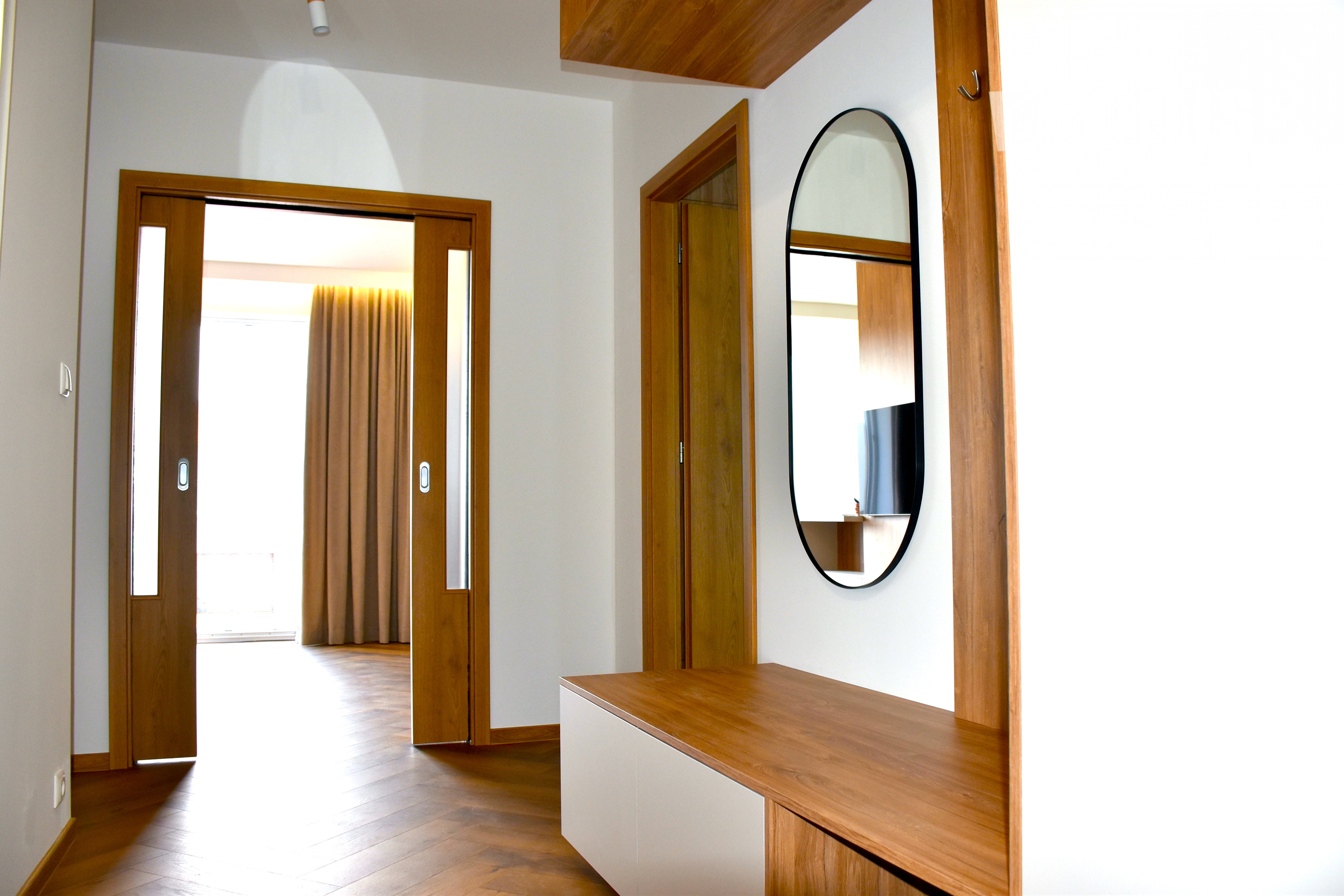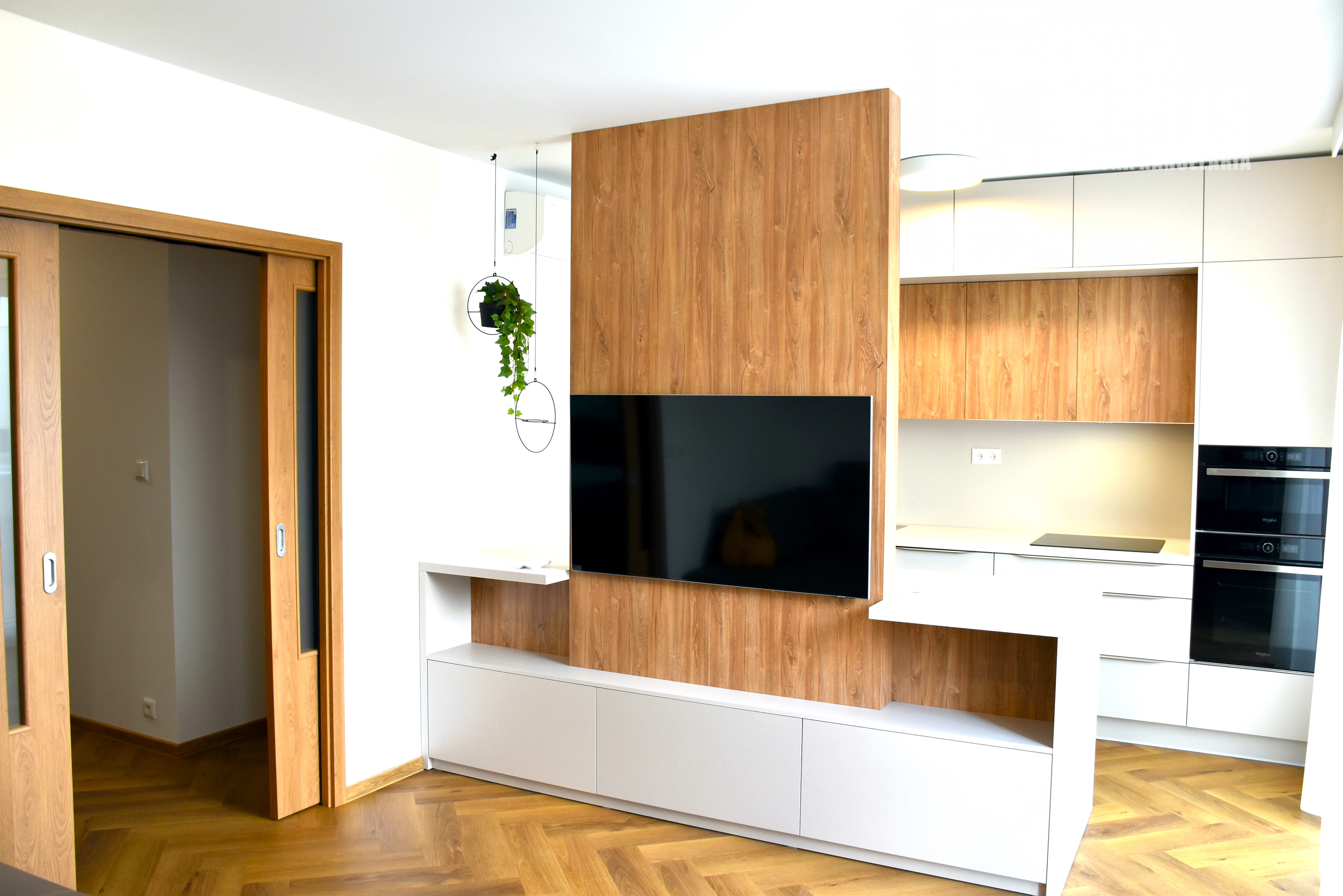 Dispozičné riešenie: vstupná chodba s botníkovou zostavou, obývačka s výstupom na terasu, kompletne zariadená kuchynská linka, samostatná spálňa s pochôdznym šatníkom, kúpeľňa so sprchovacím kútom, samostatné WC.