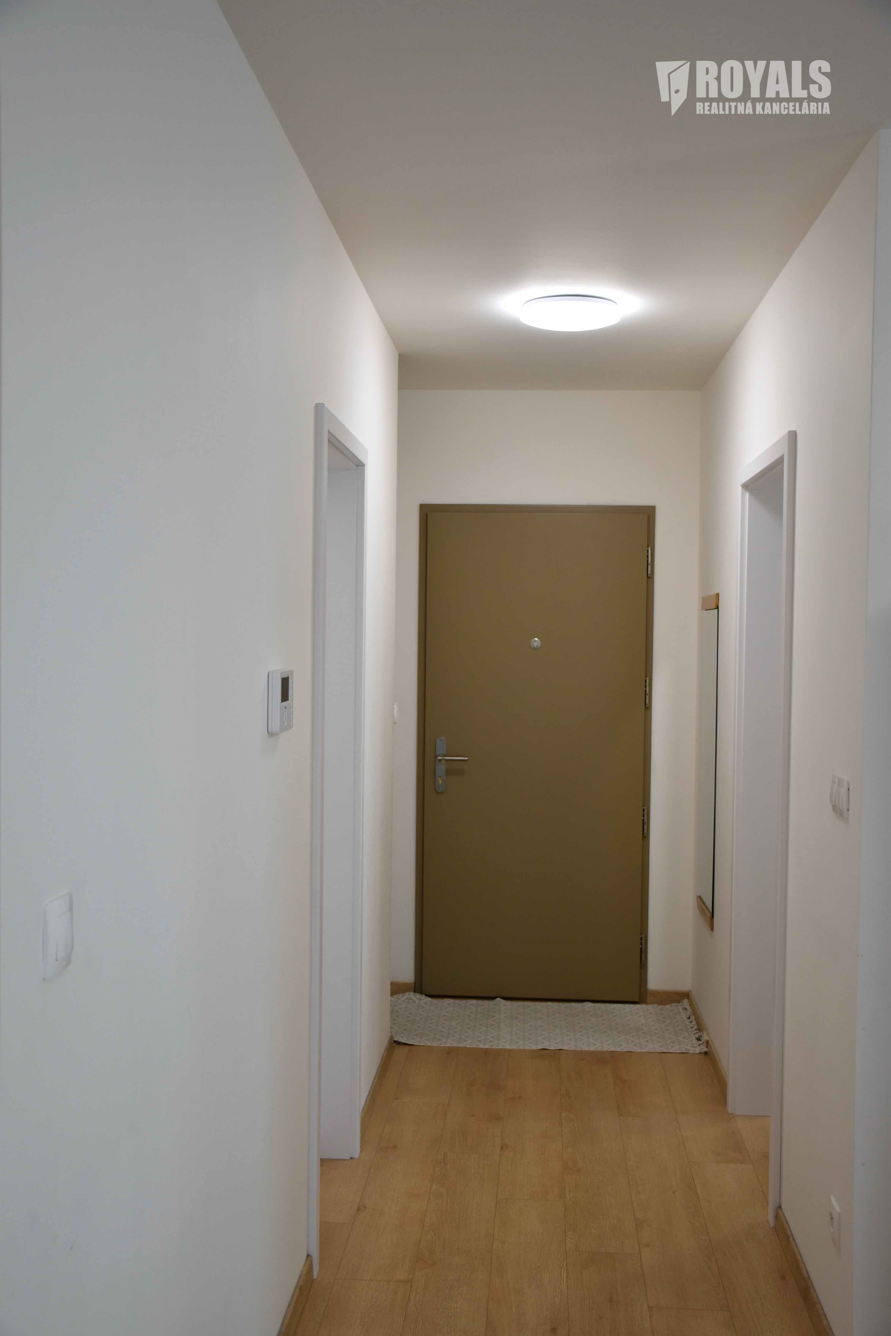 Dispozícia bytu: vstupná chodba so zabudovaným šatníkom, spálňa s manželskou posteľou, pracovným kútikom a roll-door skriňou, priestranná obývačka spojená s kompletne vybavenou kuchyňou s výstupom na priestrannú loggiou otočenú do vnútrobloku, moderná kúpeľňa so sprchovacím kútom.