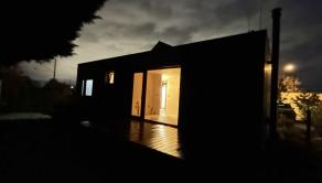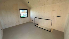 Dispozičné riešenie rodinný dom (zadná budova), úžitková plocha 33,91 m2: zádverie, kúpeľňa so sprchovacím kútom toaletou a umývadlom, obývačka s kuchynkým kútom s predprípravou na krb a klimatizáciu, spálňa.