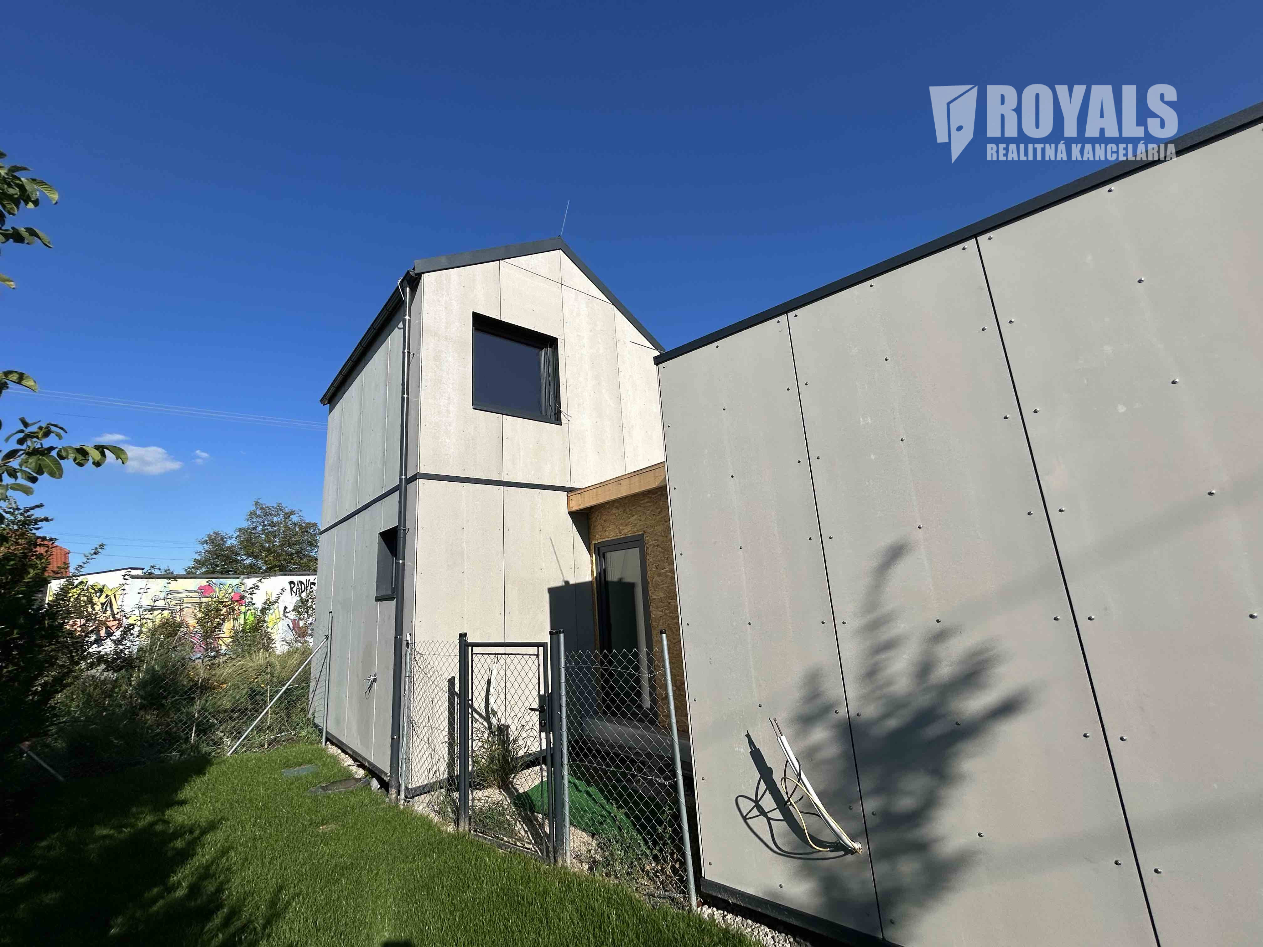 V mestskej časti Bratislava-Rusovce, na rohu Balkánskej a Kovácsovej ulice ponúkame na predaj rodinný dom s ateliérom koncipovaný ako drevodom s terasou.