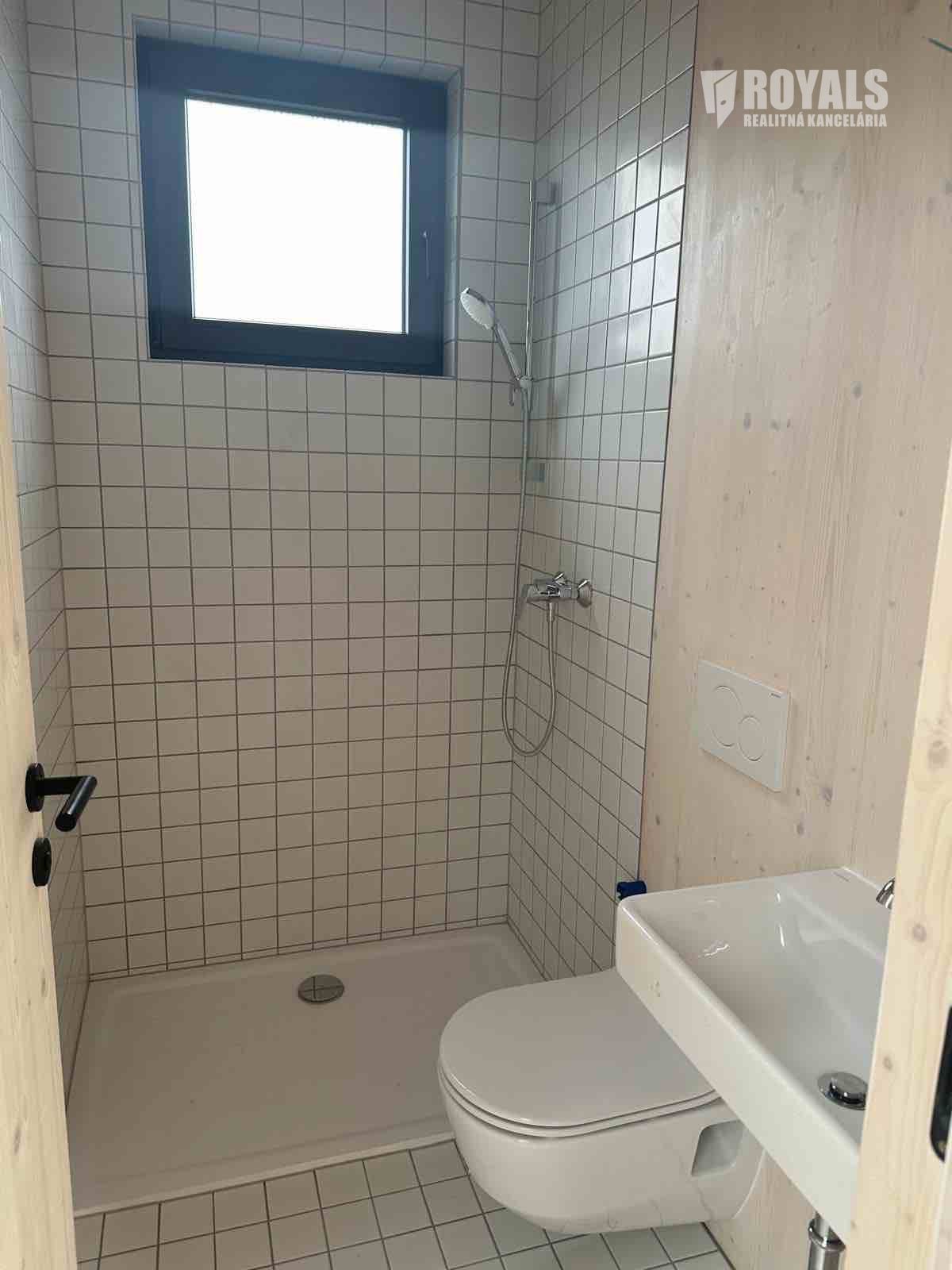 K dispozícii sú 2 kúpeľne so sprchovacím kútom a s toaletou, 2 spálne, 2 obývačka spojené s kuchyňou, 2 terasy a pekovanie pre 3 vozidlá priamo na pozemku.