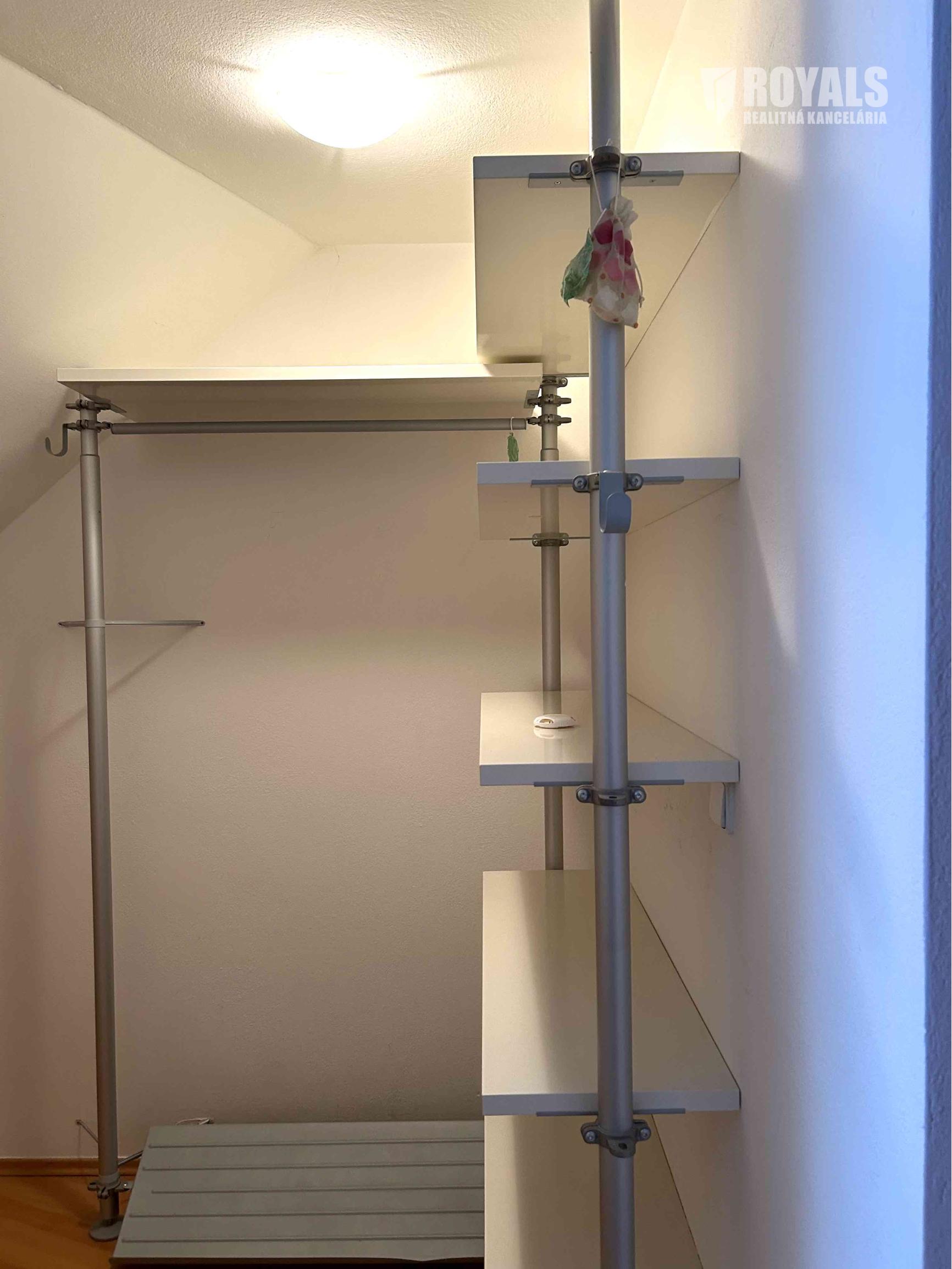 Na poschodí sa nachádza spálňa so zabudovaným šatníkom a výstupom na loggiu, kúpeľňa s vaňou, sprchovacím kútom a toaletou.