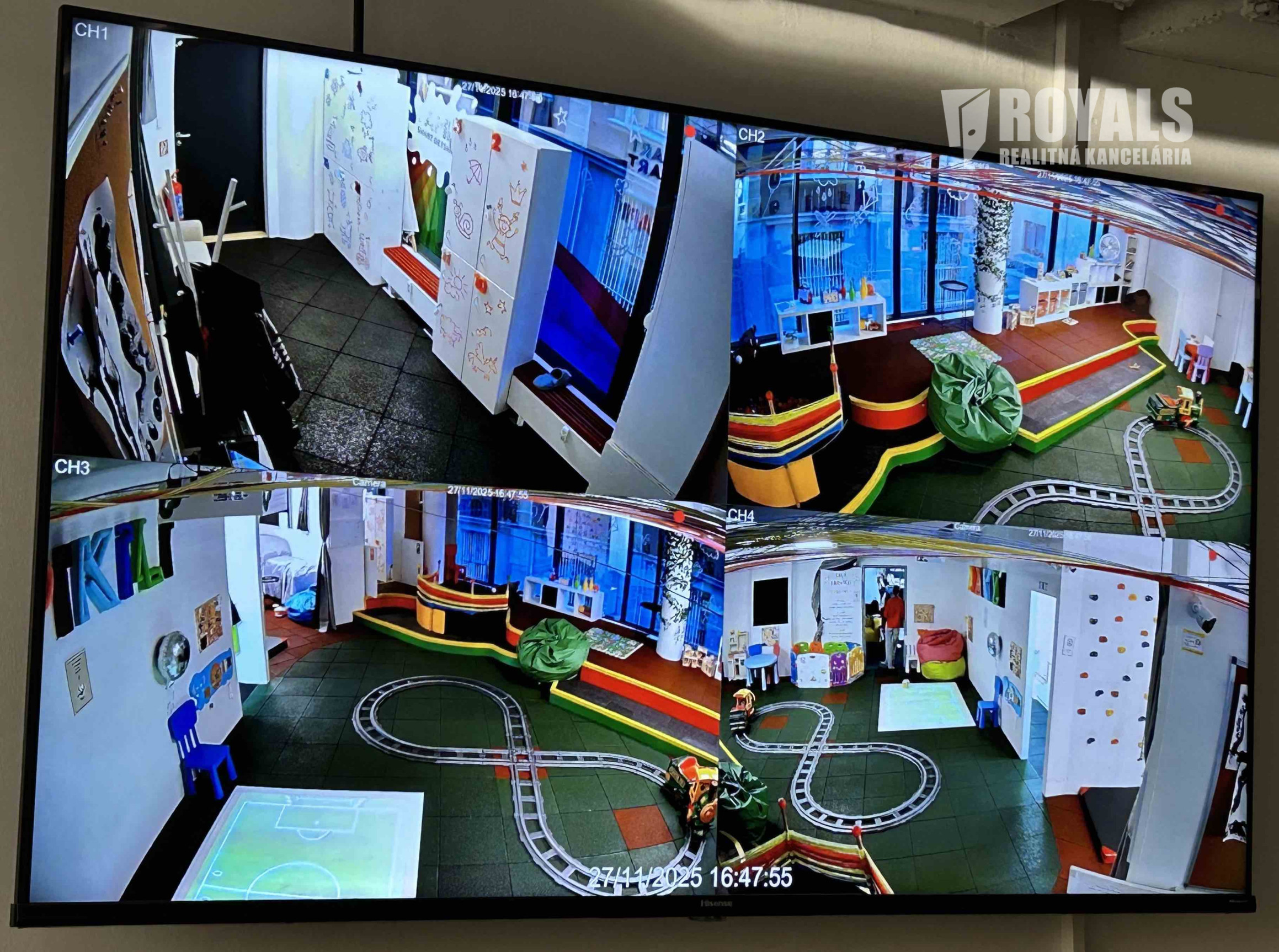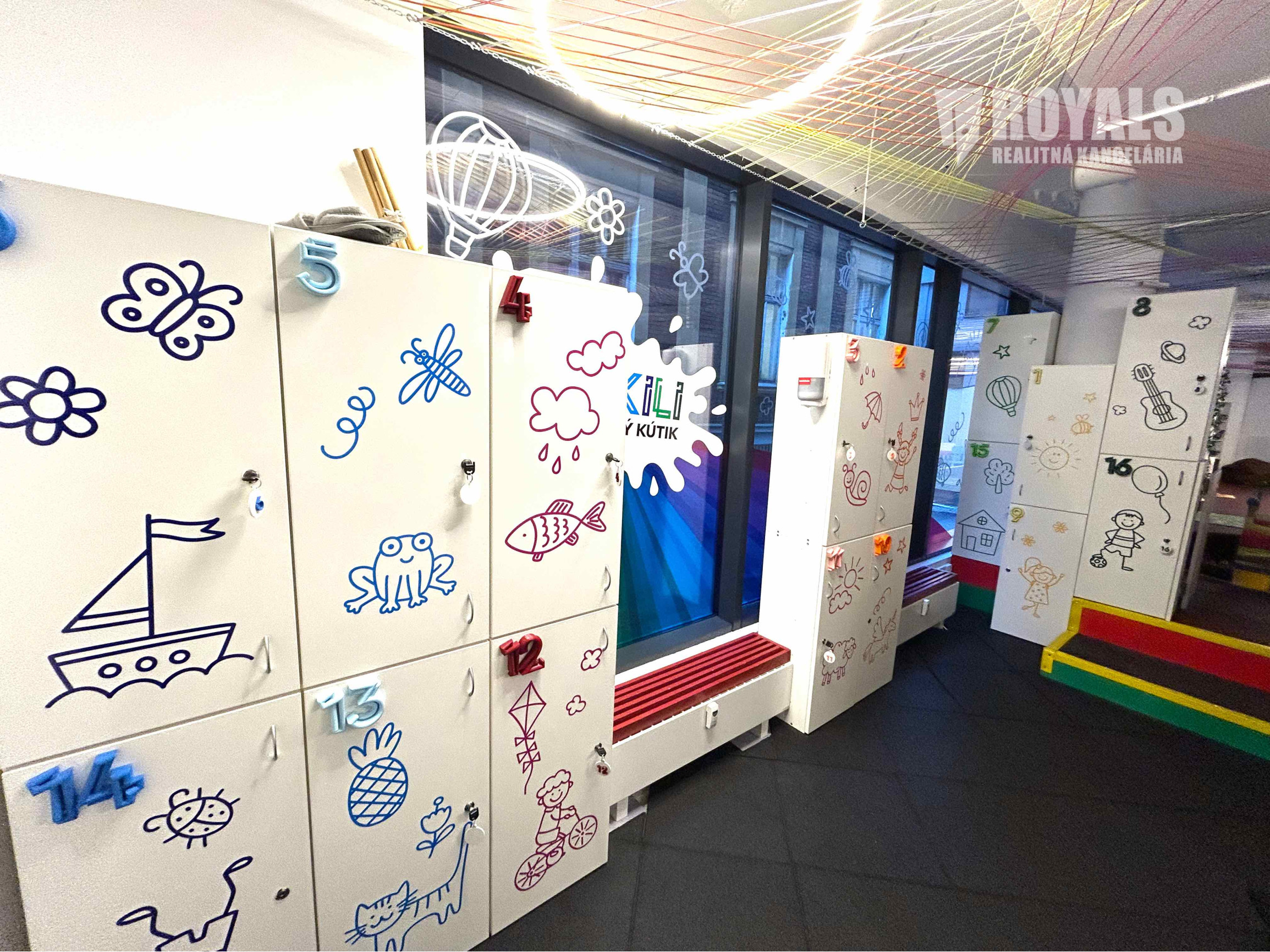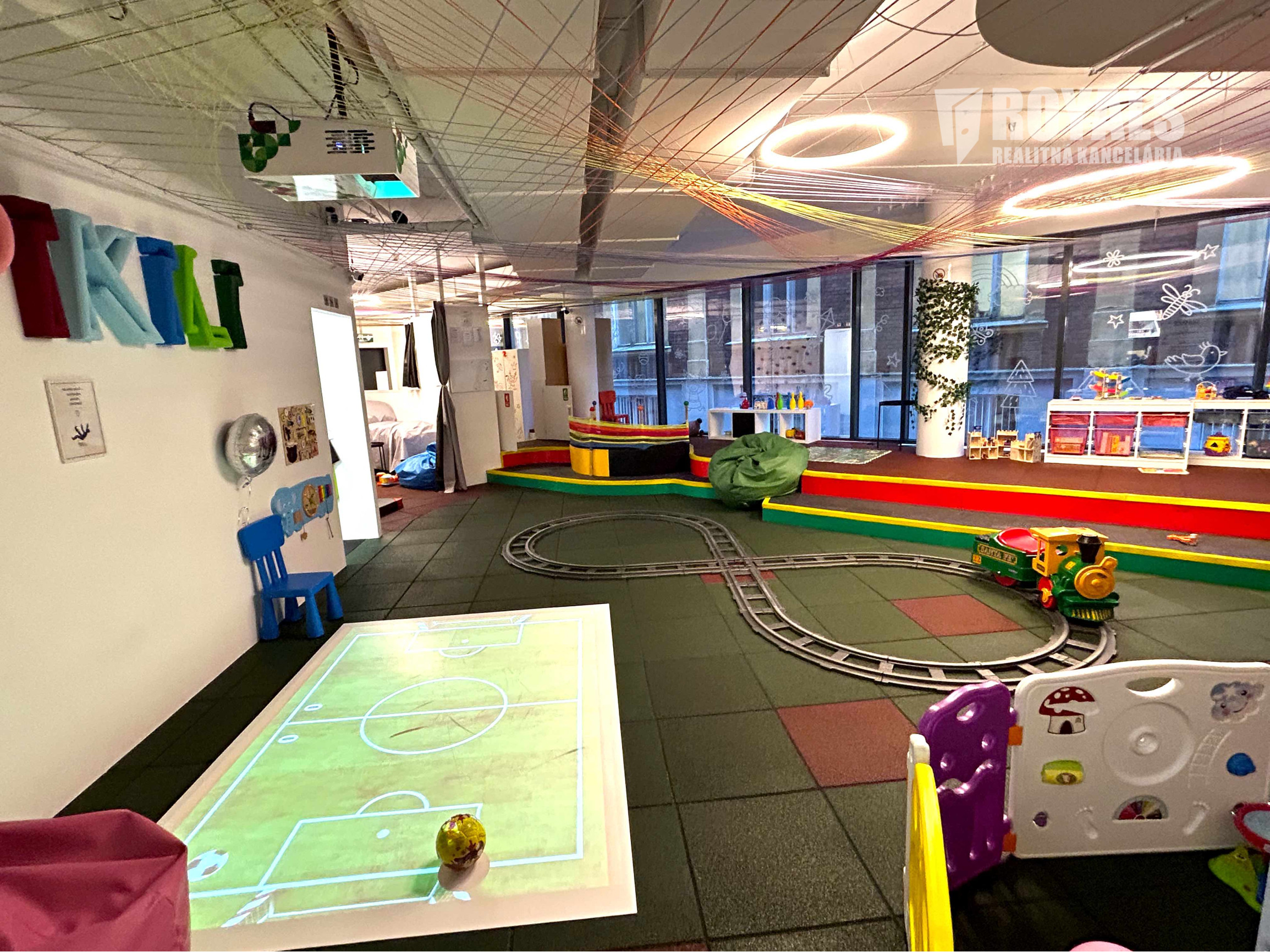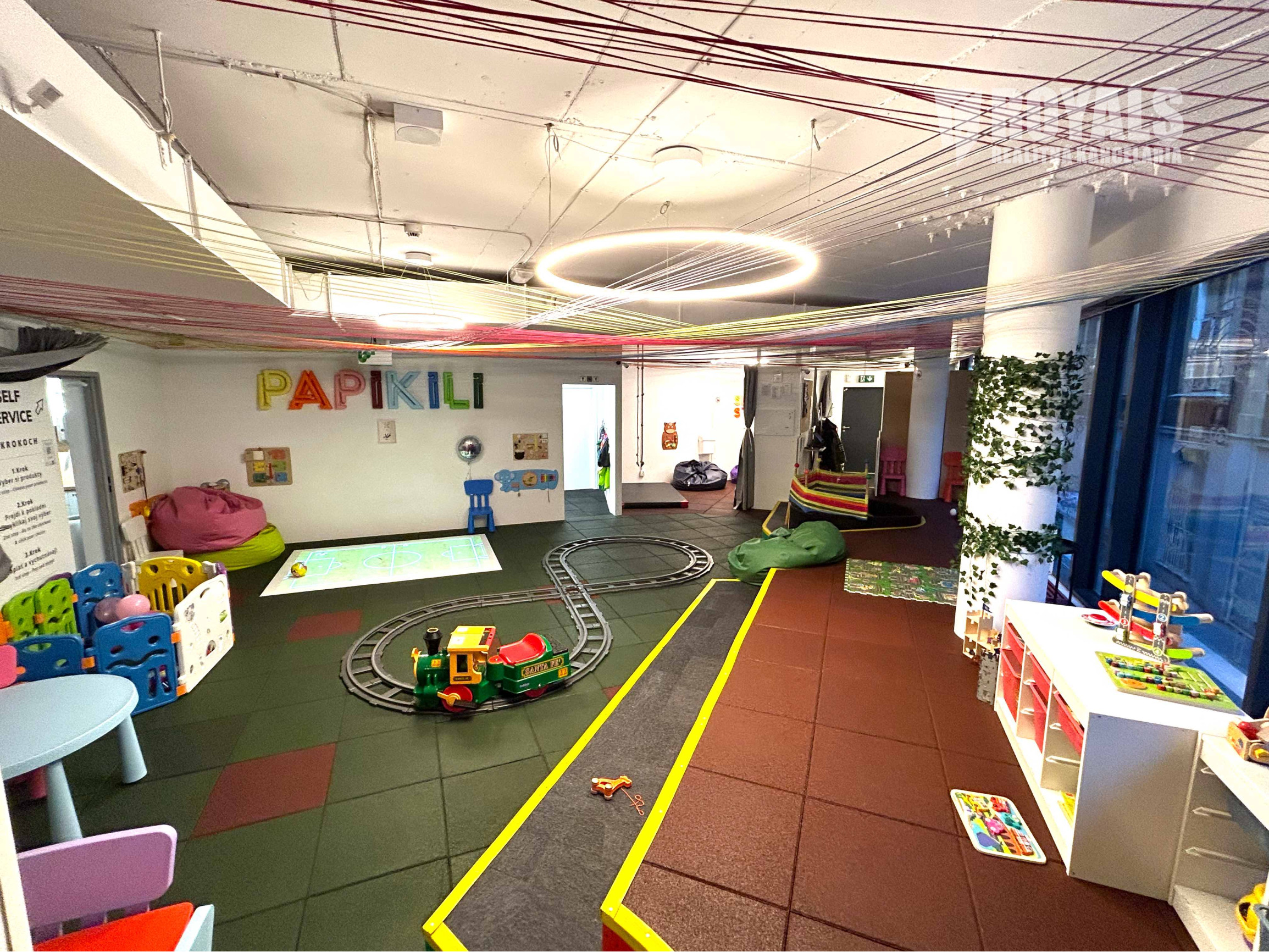 Vybavenie: interaktívne hry aj na výučbu cudzích jazykov, hračky, guličkový bazén, herné prvky, lezecká stena, elektrický vláčik, nábytok, kuchynské vybavenie, kamerový systém, dochádzkový systém, POS terminál, TV monitor, atď.