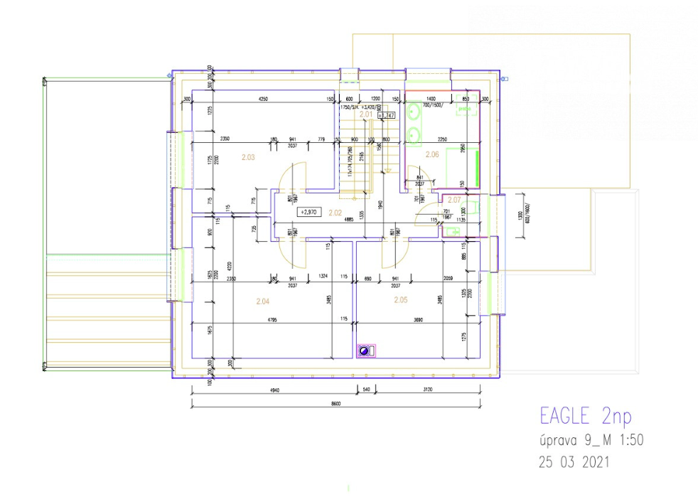 Stropy v 2.NP sú zvýšené podľa strešnej roviny.