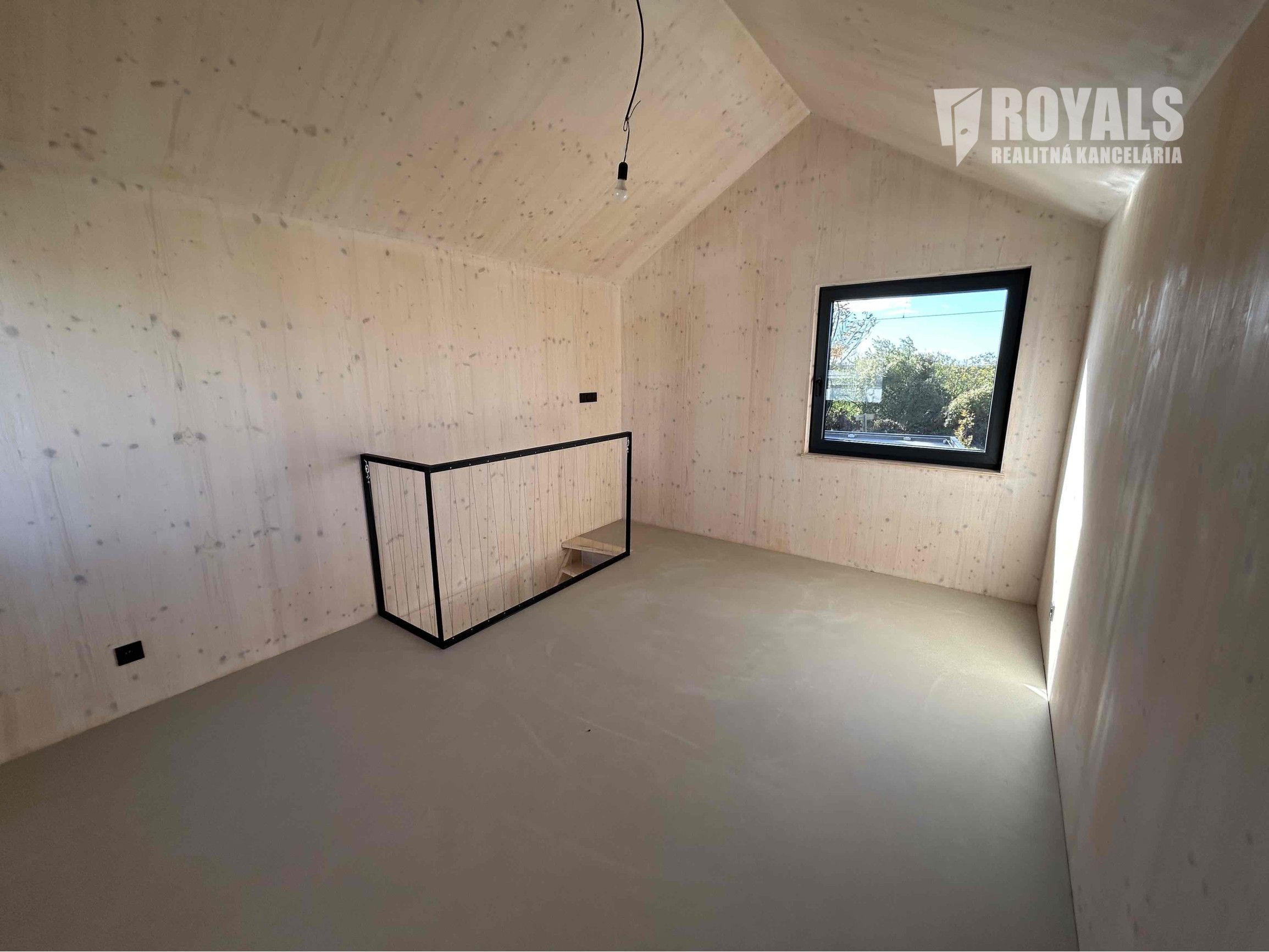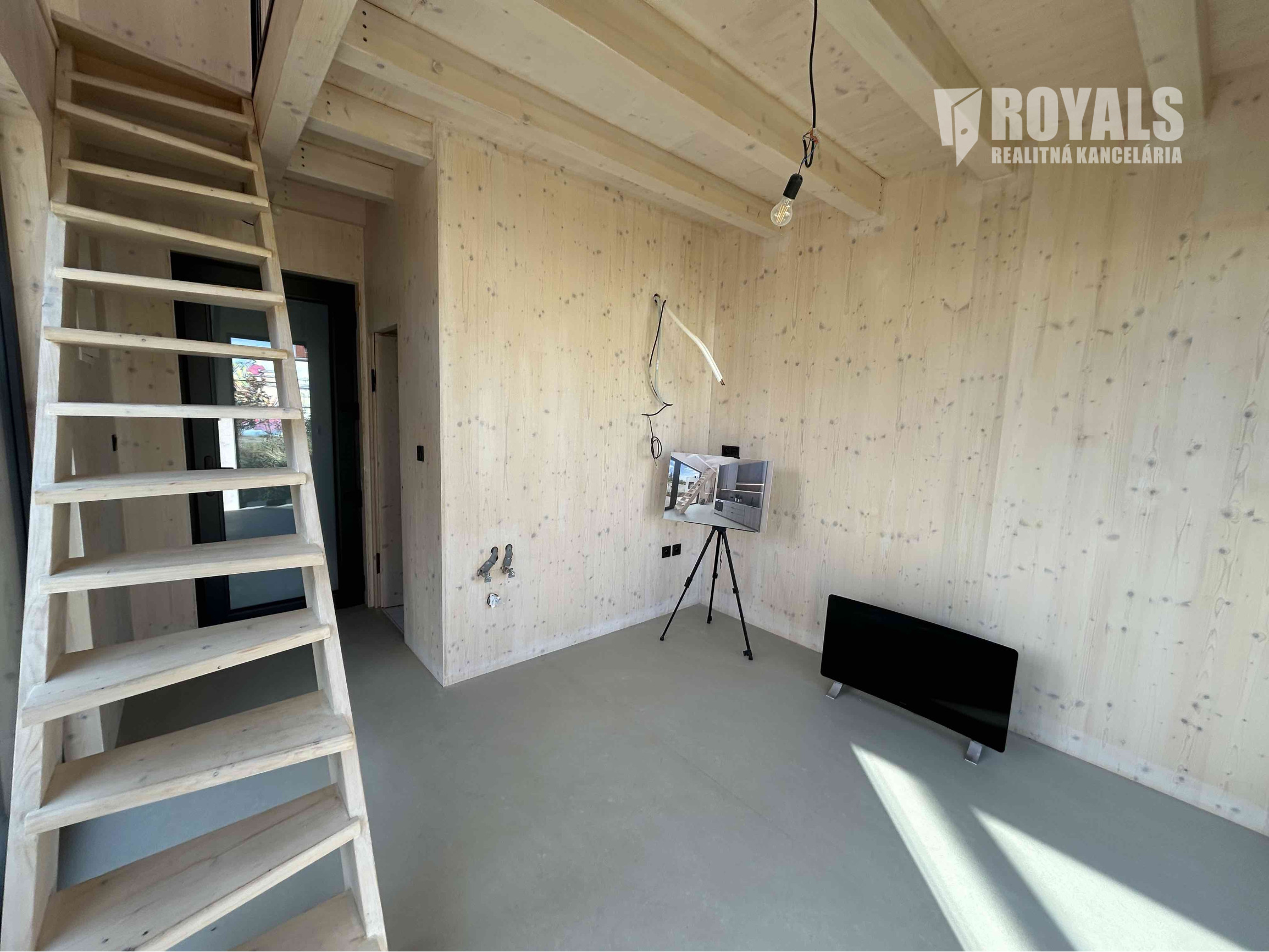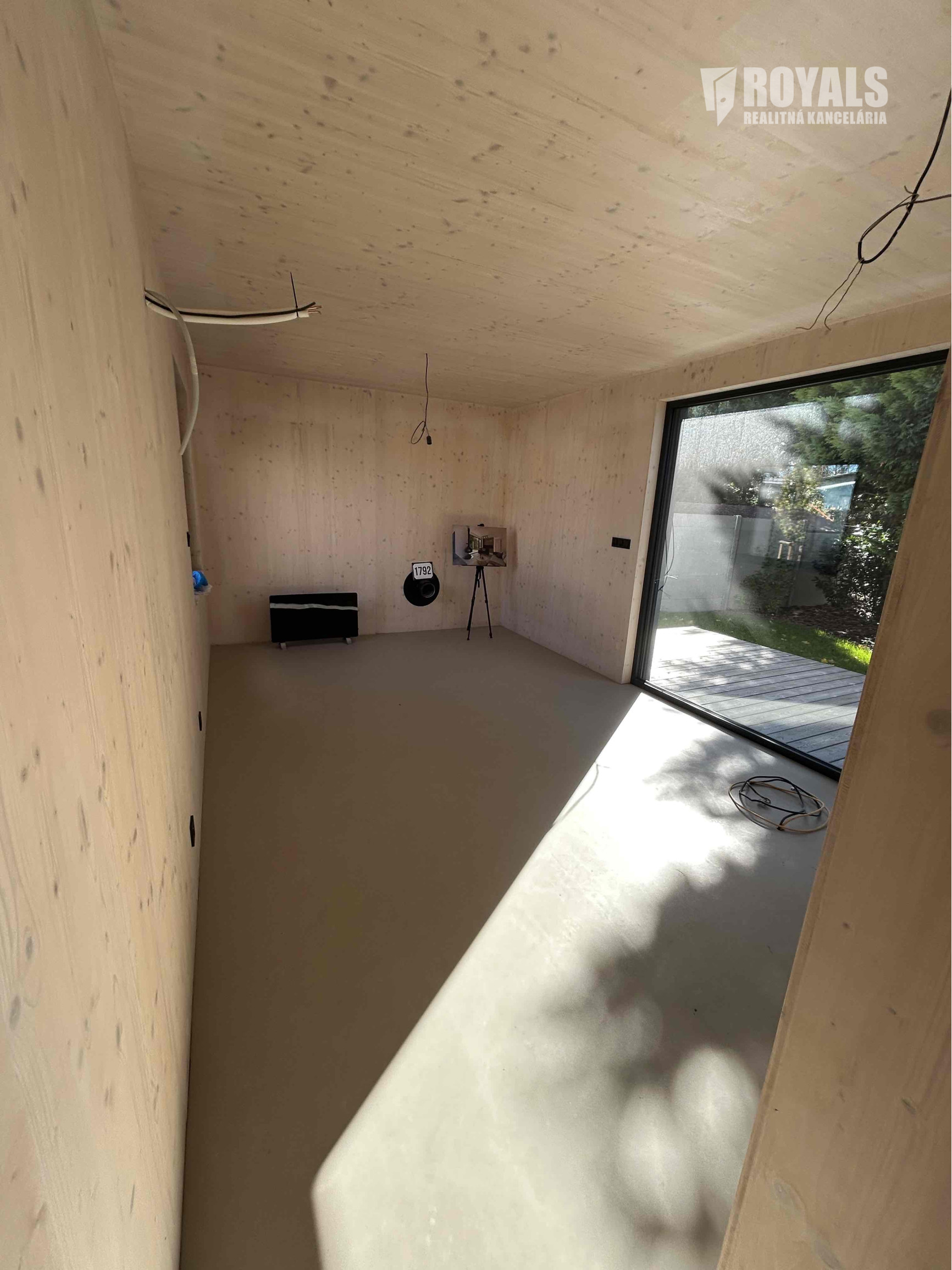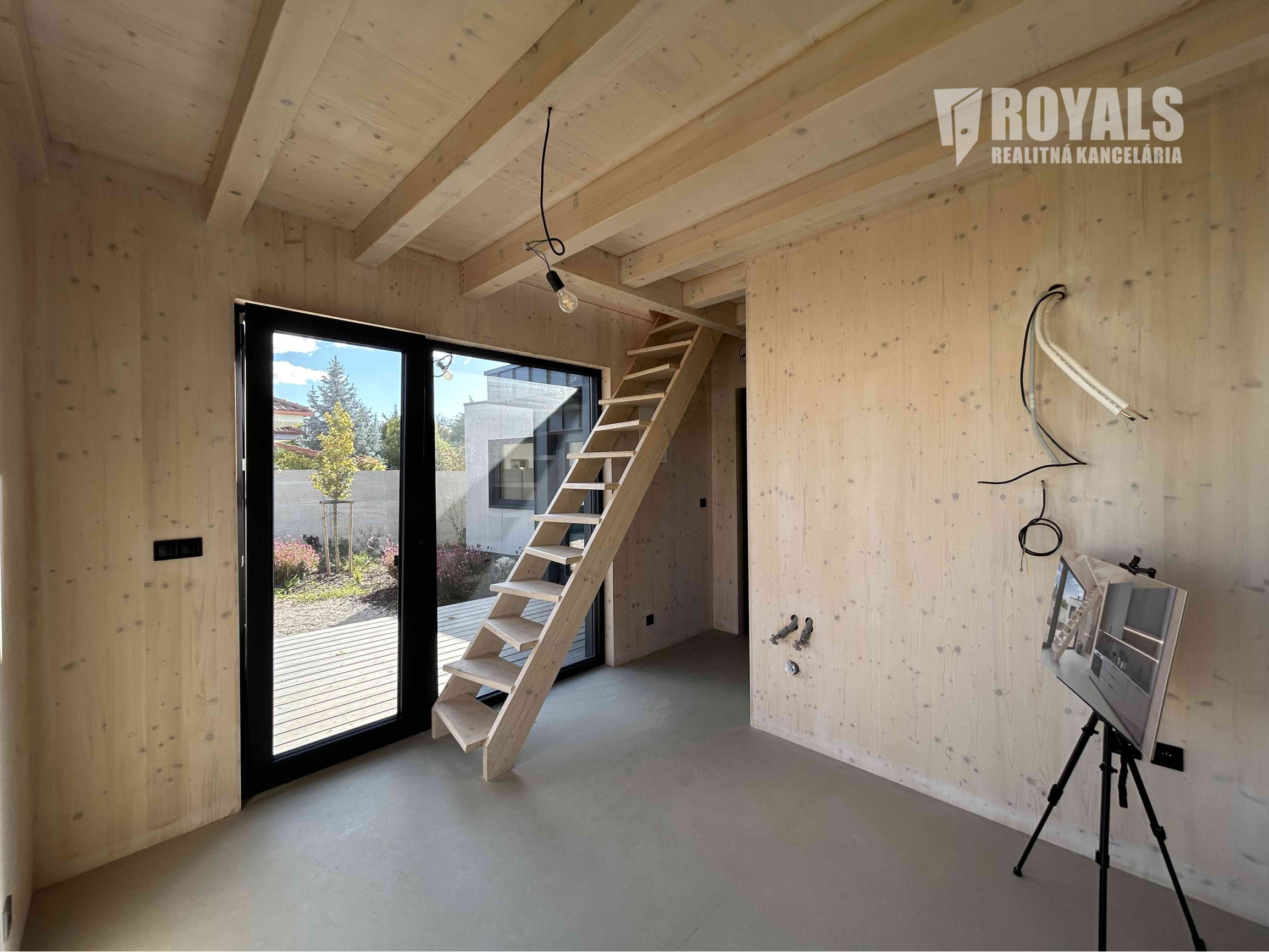 Jedná sa o novostavbu dvoch samostatných blokov budov prepojených presklenou verandou a tým pádom môžu, ale aj nemusia tvoriť jeden celok. Prepojením vznikla dodatočná úžitková plocha 14 m2.