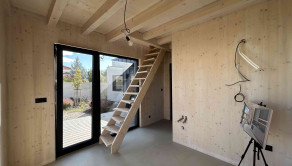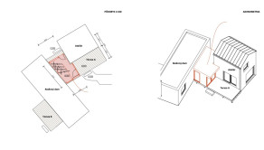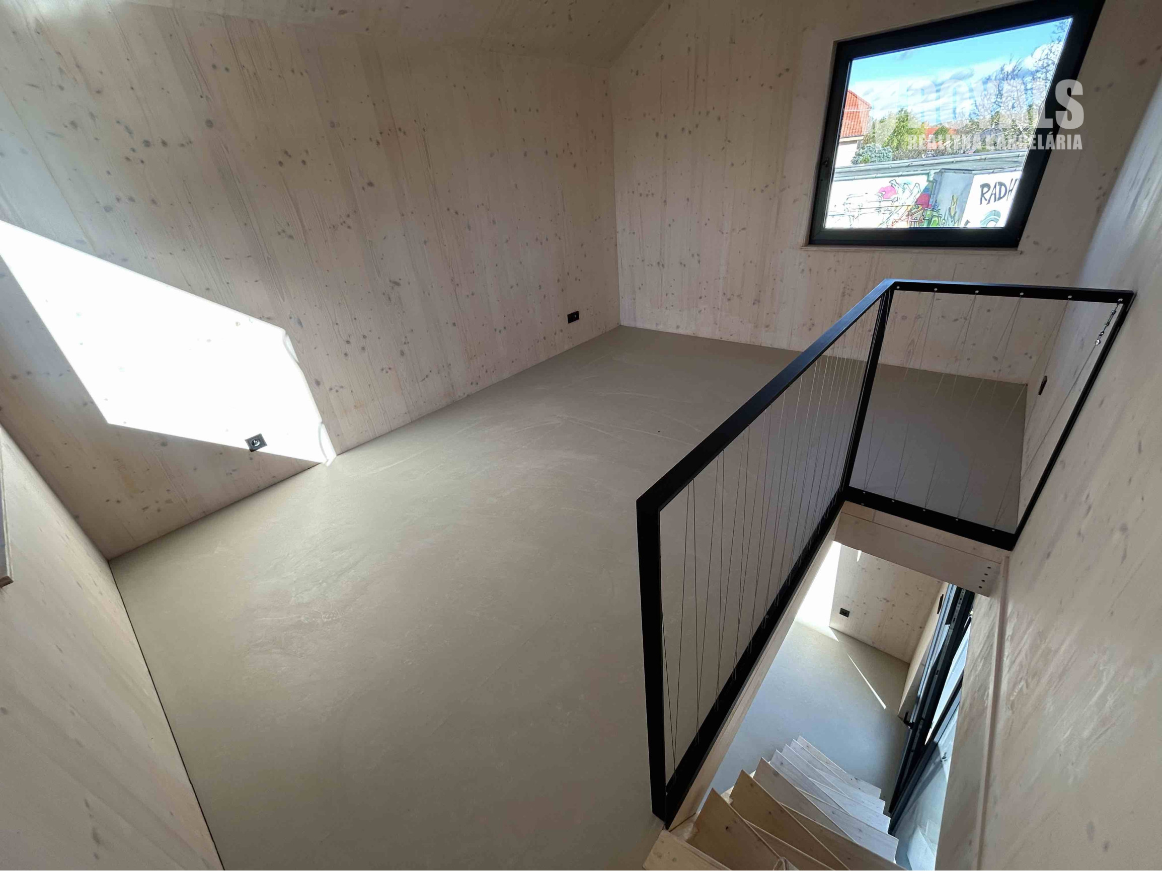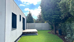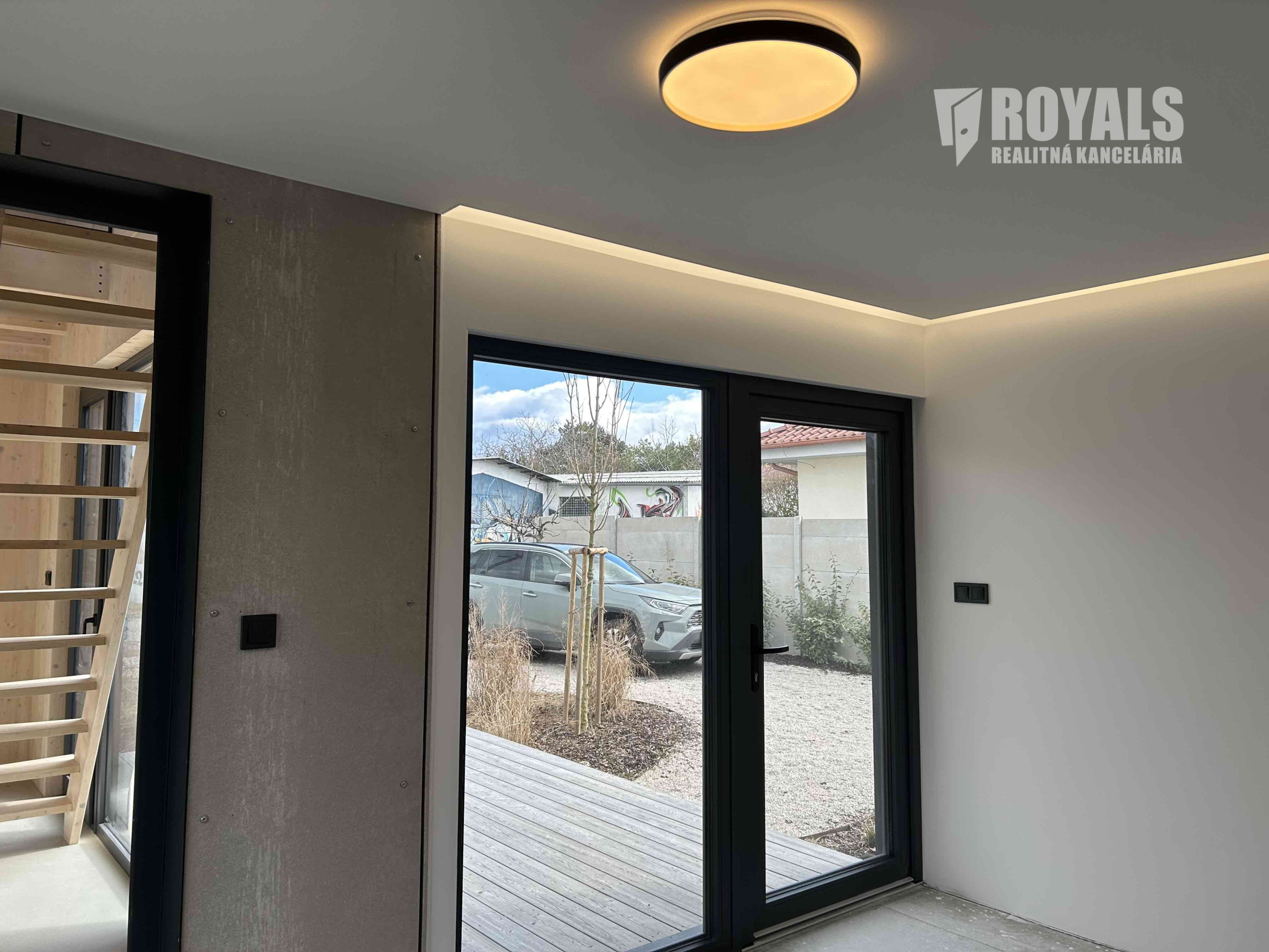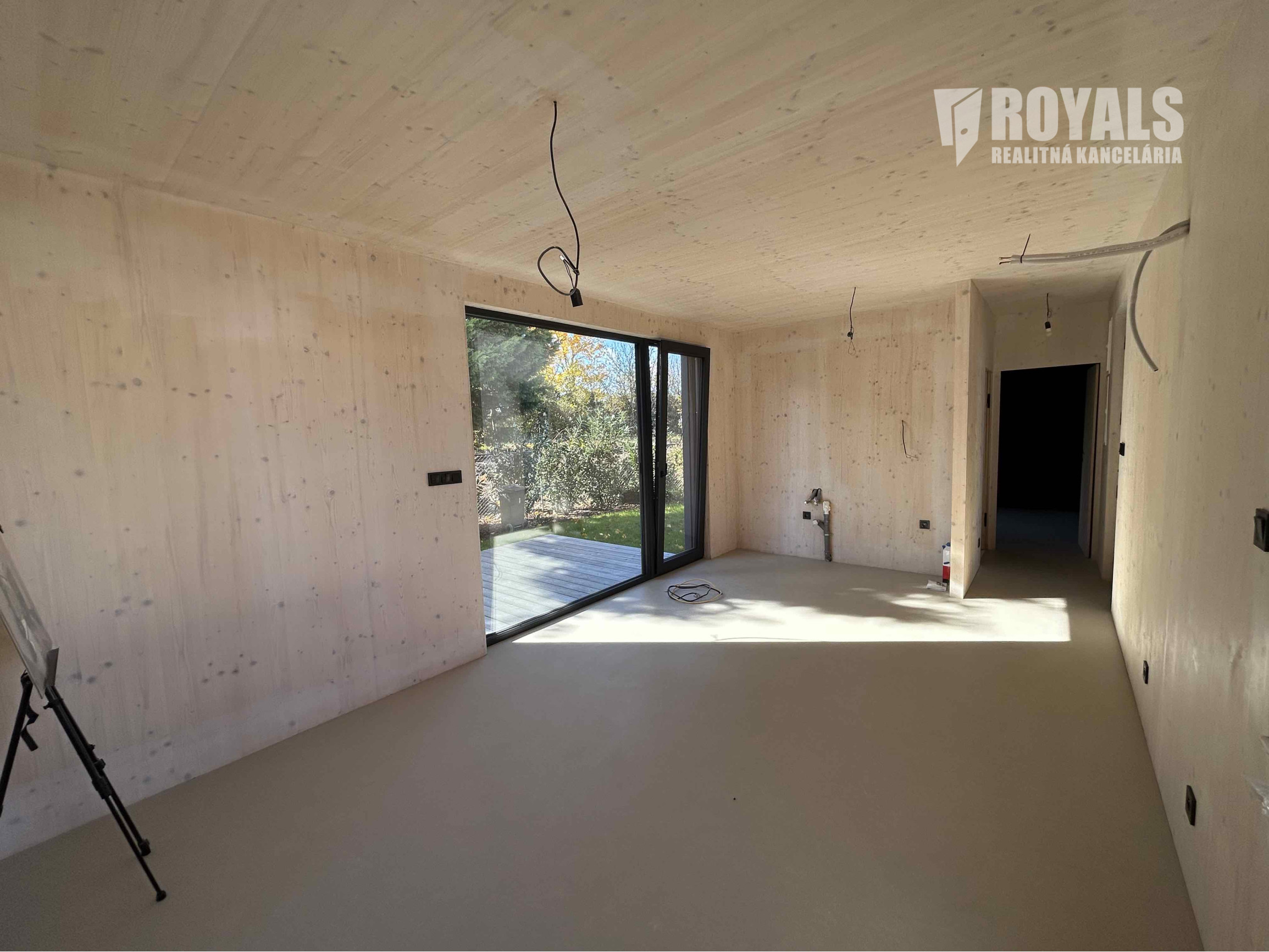 Jedná sa o novostavbu dvoch samostatných blokov budov prepojených presklenou verandou a tým pádom môžu, ale aj nemusia tvoriť jeden celok. Prepojením vznikla dodatočná úžitková plocha 14 m2.