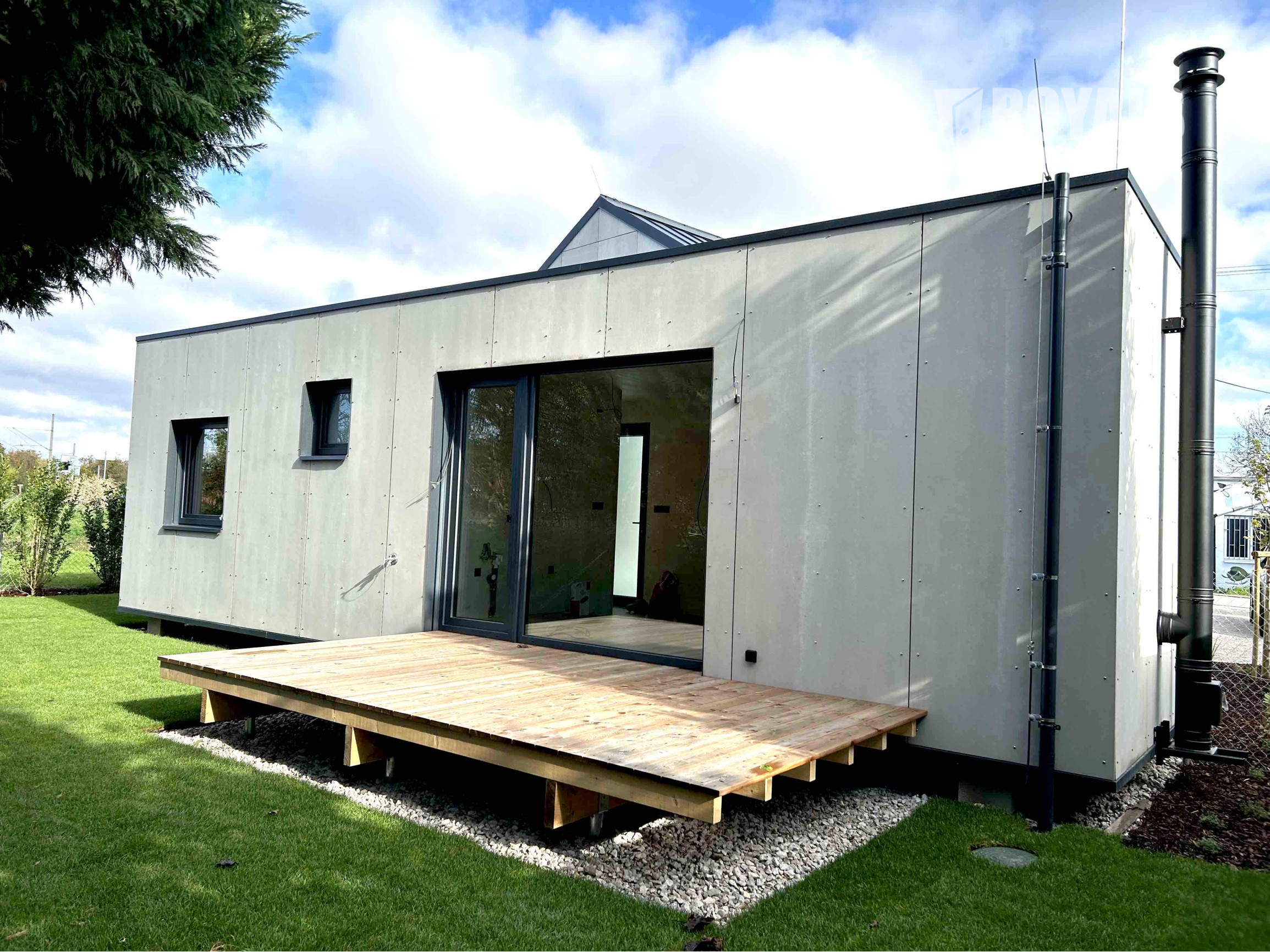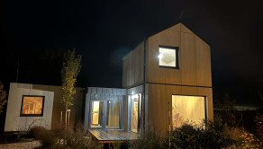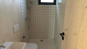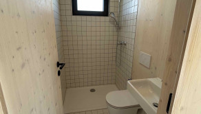 Dispozičné riešenie (zadná budova, bungalov), úžitková plocha 33,91 m2: zádverie, kúpeľňa so sprchovacím kútom toaletou a umývadlom, obývačka s kuchynkým kútom s predprípravou na krb a klimatizáciu, spálňa.