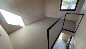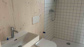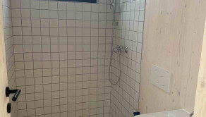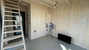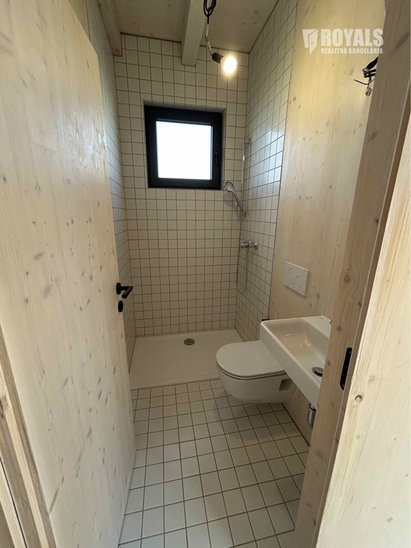 Dispozičné riešenie (predná, 2-podlažná budova), úžitková plocha 27,01 m2: zádverie, kúpeľňa so sprchovacím kútom, toaletou a umývadlom, izba s kuchynským kútom, samostatná miestnosť v podkroví.